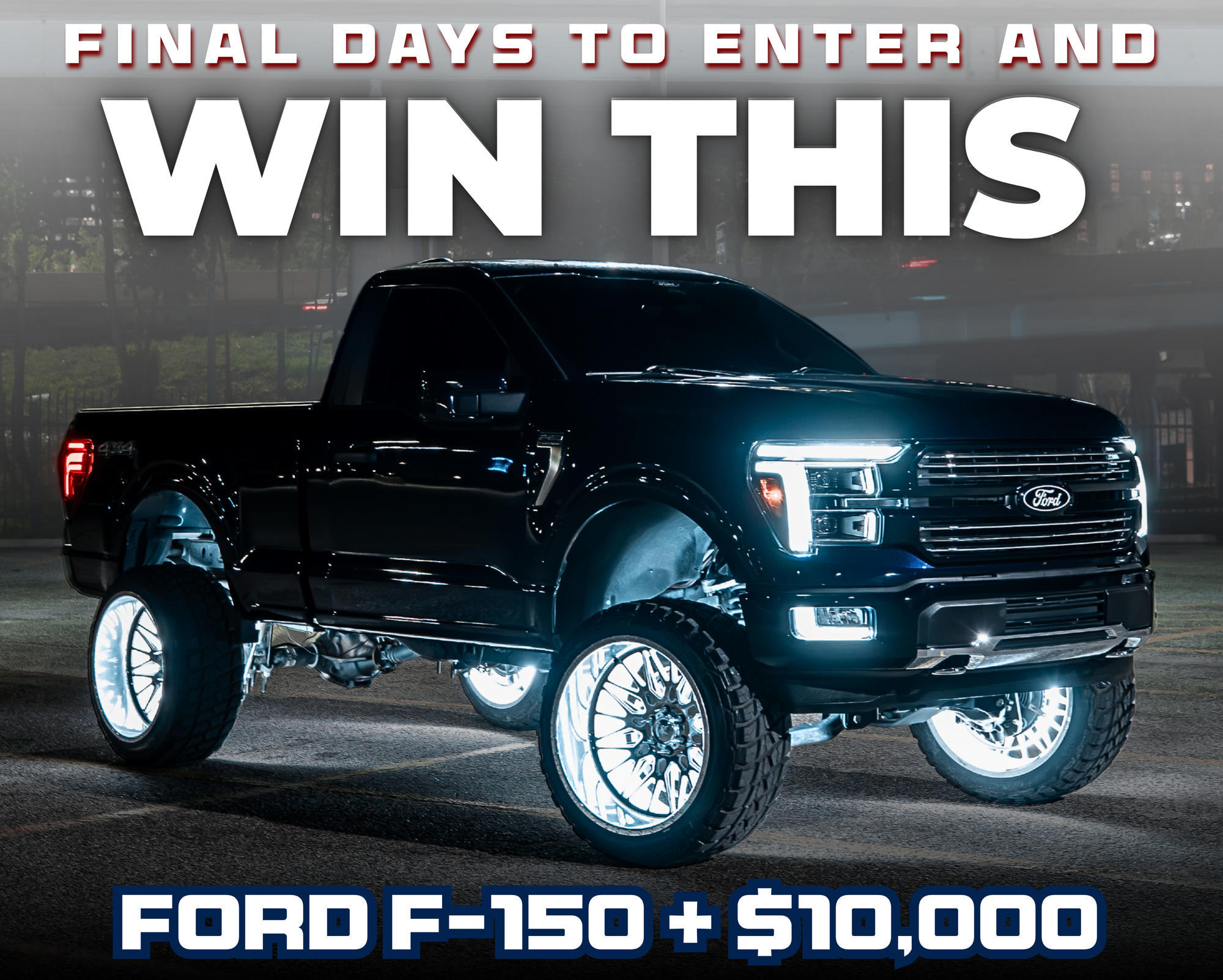 FORD F-150 + $10,000 cash. Winner flies out to HQ and gets everything in person.